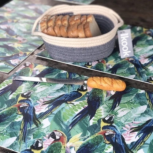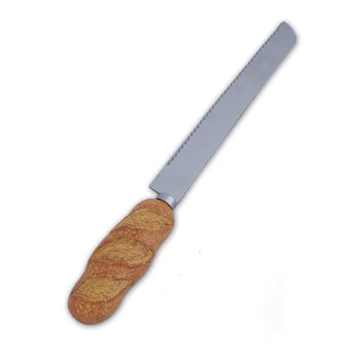 Cuchillo de pan de acero inoxidable y mango de resina pintada a mano.