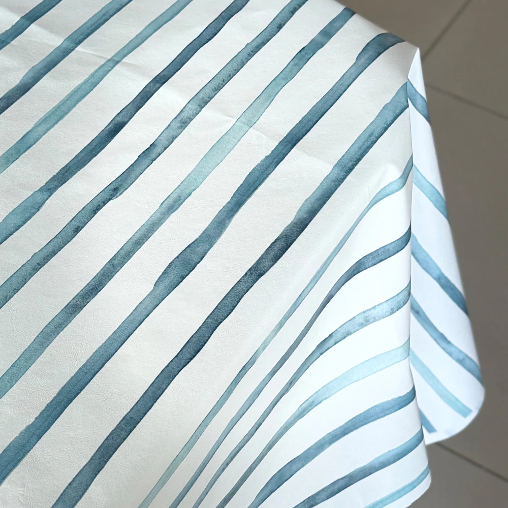 Mantel Ecocuero Impermeable - Acuarela Rayas Azules NUEVO