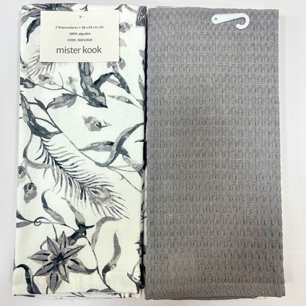 Repasador de Cocina Set/2 Flores Gris - RAFLOGR